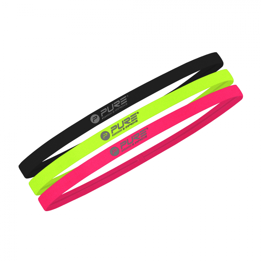 Benzile pentru cap, set de 3 bucăți în negru, roz neon și galben neon.