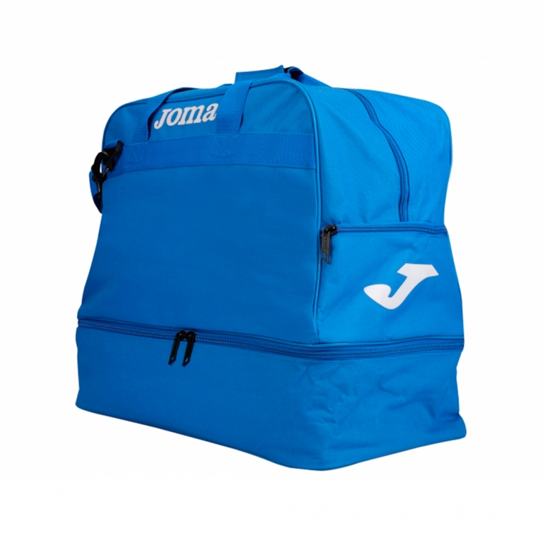Geantă de antrenament și competiție cu buzunar interior matlasat. Fabricată din poliamidă, o fibră sintetică foarte rezistentă și ușoară. Înălțime: 48 cm (pantofar înălțime 13 cm). Lățime: 49 cm. Adâncime: 32 cm.