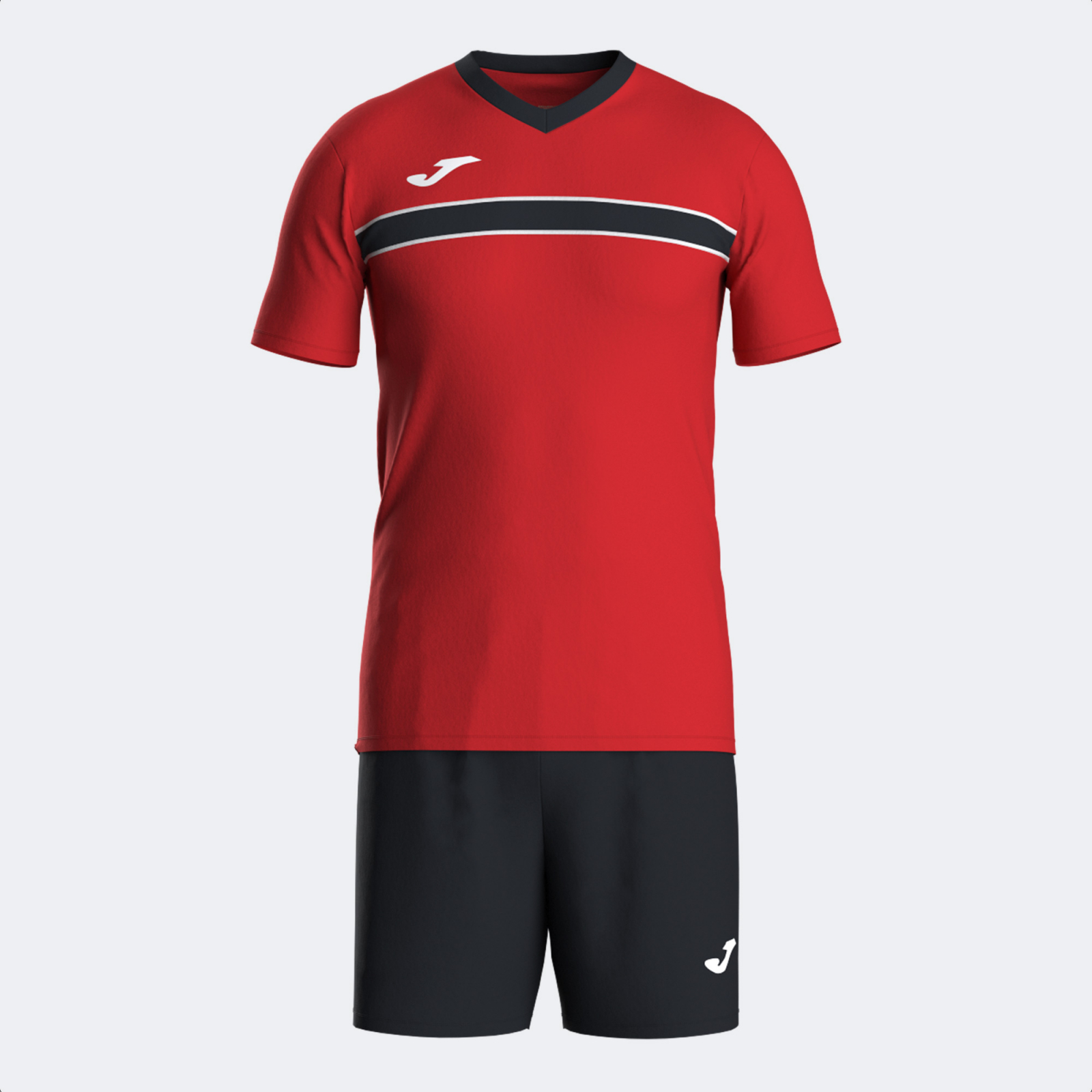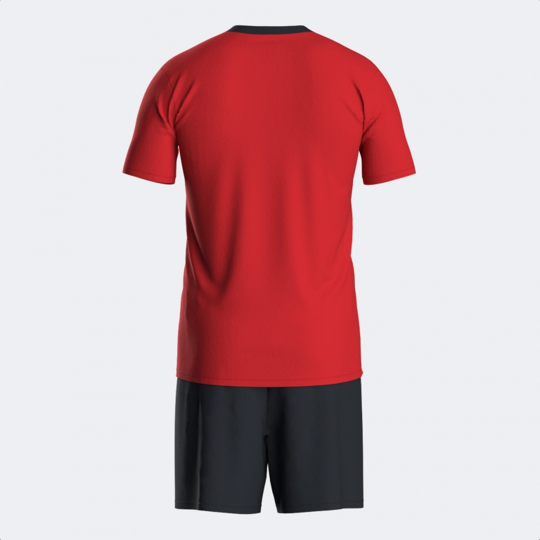 Este un set compus dintr-un tricou cu mâneci scurte și șort. Tricoul are guler în V cu bandă elastică interioară pentru a optimiza ajustarea și a preveni posibile iritații. Design cu tăieturi contrastante colorate. Pe de altă parte, pantalonul scurt are o talie elastică reglabilă cu șnur interior.