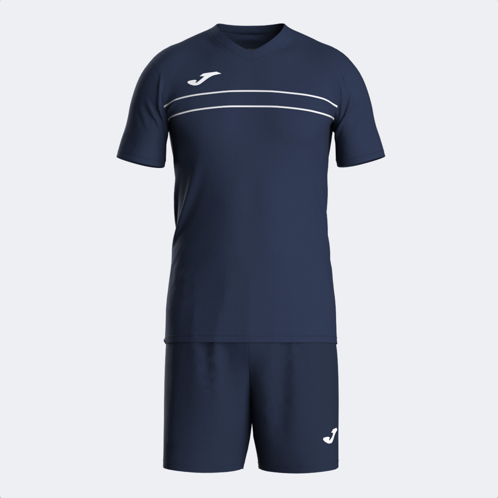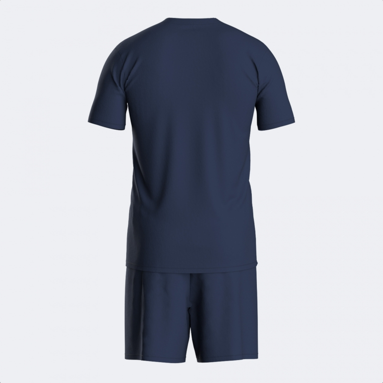 Este un set compus dintr-un tricou cu mâneci scurte și șort. Tricoul are guler în V cu bandă elastică interioară pentru a optimiza ajustarea și a preveni posibile iritații. Design cu tăieturi contrastante colorate. Pe de altă parte, pantalonul scurt are o talie elastică reglabilă cu șnur interior.