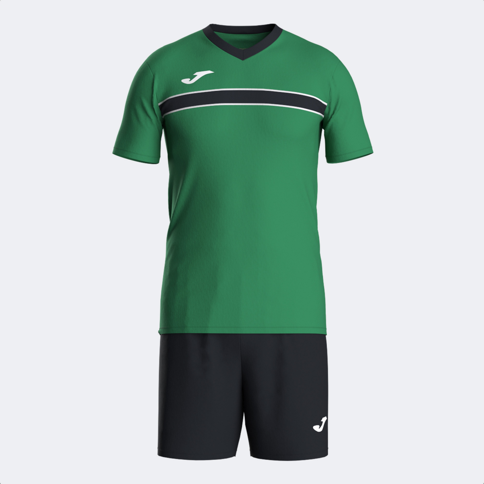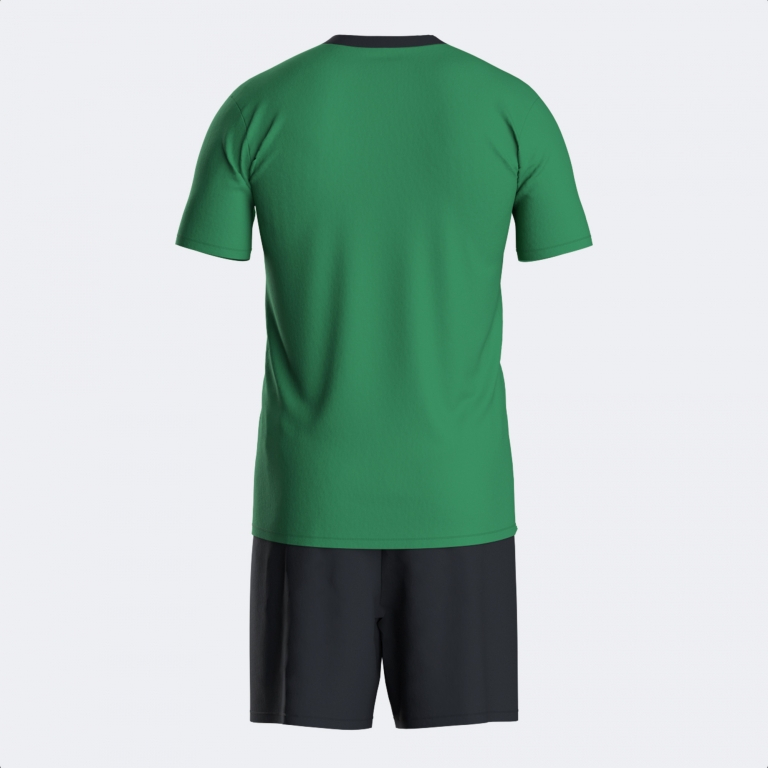 Este un set compus dintr-un tricou cu mâneci scurte și șort. Tricoul are guler în V cu bandă elastică interioară pentru a optimiza ajustarea și a preveni posibile iritații. Design cu tăieturi contrastante colorate. Pe de altă parte, pantalonul scurt are o talie elastică reglabilă cu șnur interior.
