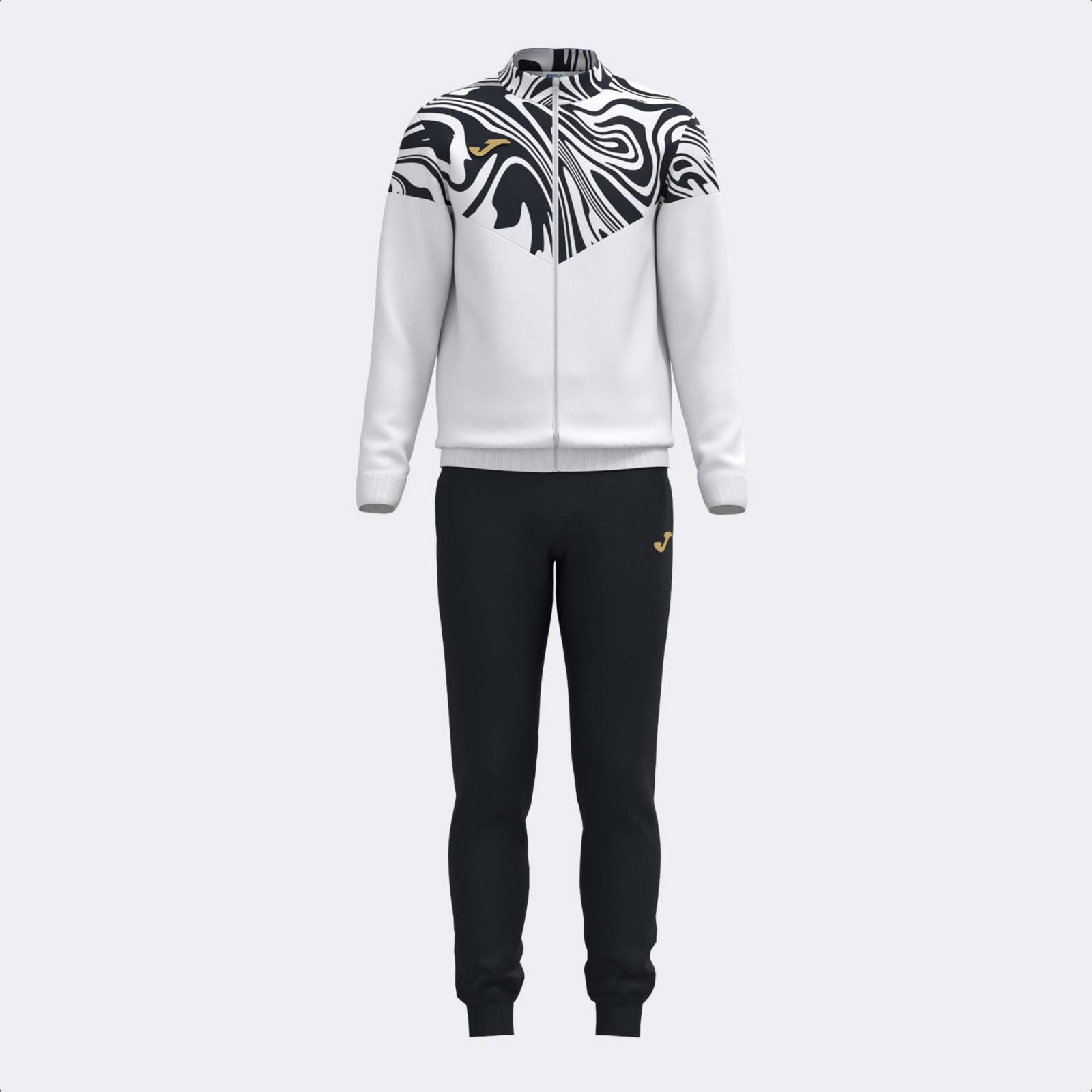 Puloverul are un fermoar complet și un protector pentru bărbie, guler înalt și ajustare cu rib la mâneci și talie. De asemenea, are două buzunare laterale fără fermoar, în care poți să-ți depozitezi obiecte mici. Pe de altă parte, pantalonii au o talie elastică ajustabilă cu șnur, rib în partea de jos și alte două buzunare fără fermoar.